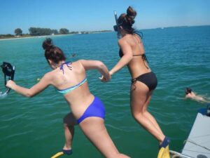 Once anchored, the fun begins. You’ll have time to hop off the boat onto the pristine white sand beach, lined with shells and sand dollars. Here, the real treasure hunt starts—filling your bag with beautiful native shells like conchs and whelks, and maybe even stumbling upon a rare Junonia shell, prized among collectors.