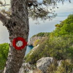 The route covers around 9 km, starting with a climb up to the summit of Mount Sr, which reaches 412 meters. The trail is well-marked but rocky, meaning proper footwear—sturdy trainers or hiking shoes—is essential. The ascent is moderate but can be challenging if you’re not accustomed to uneven terrain.