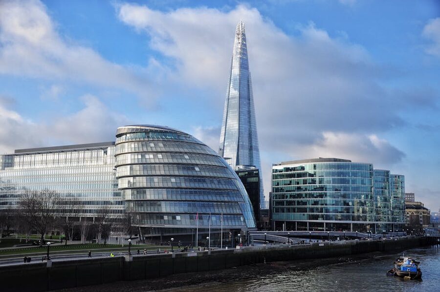 The Shard London skyline glass buildings