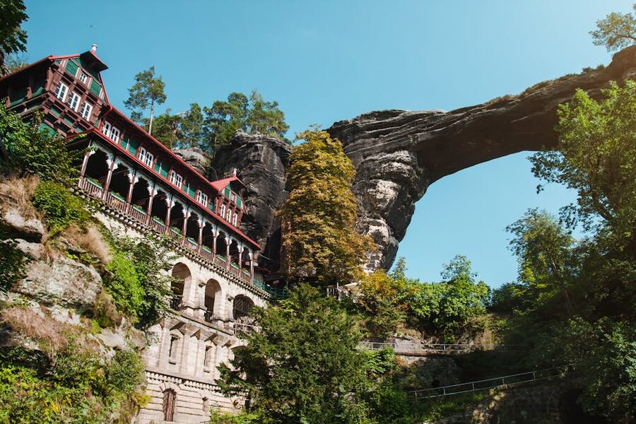 - Bastei Bridge (on the German side). A stone footbridge built across a rock ridge in 1824. Still the single most photographed spot in Saxon Switzerland. On two-country tours, this is the afternoon stop.