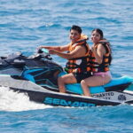 You can ride on a two-seater jet ski with one or two people, and both can take turns driving at no extra cost.